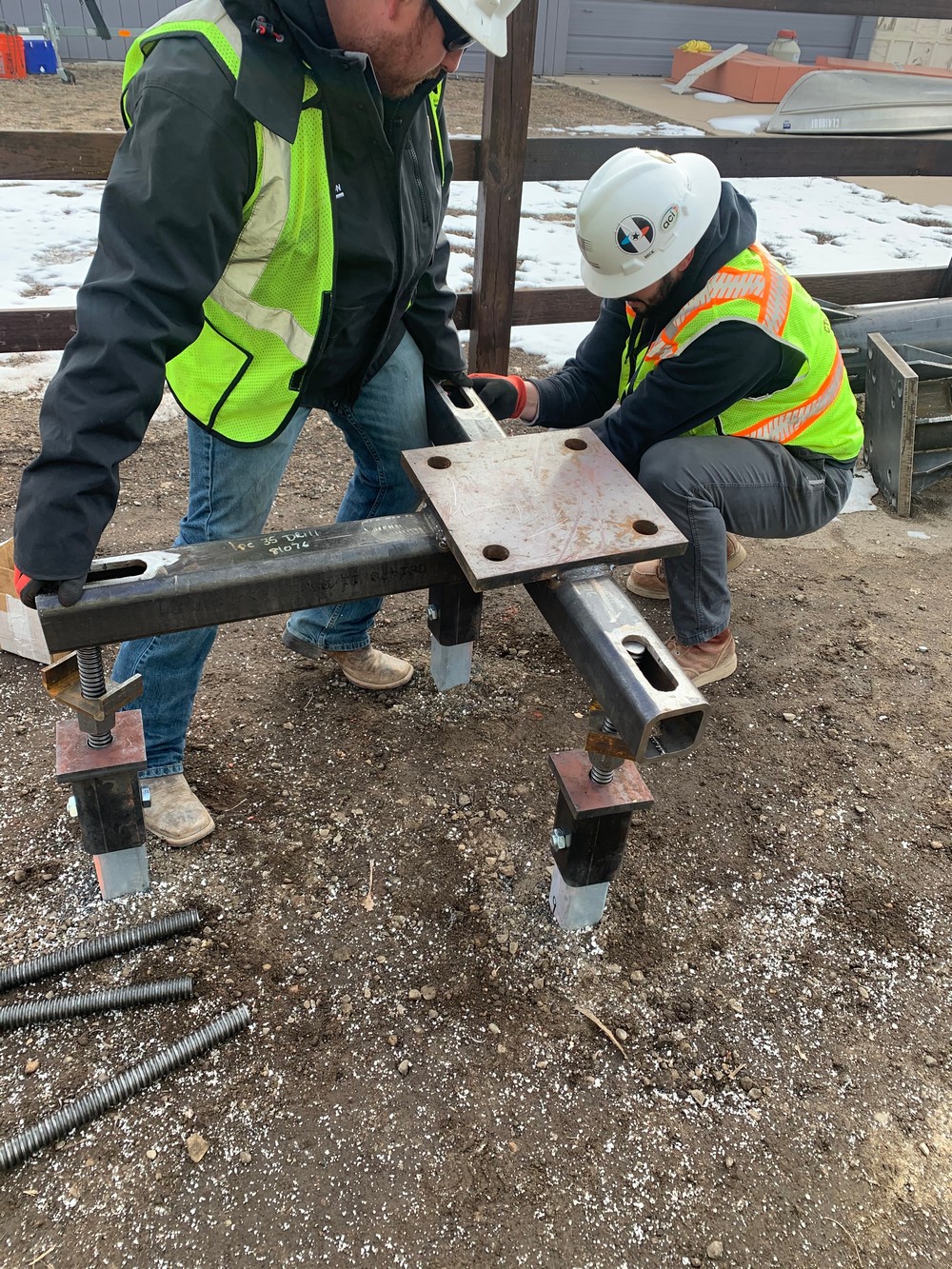 For installations in areas with a restrictive right of way (ROW) and less-than-ideal soils, Meyer developed the Meyer QuickPier™ Adapter and QuickPier™ Foundation Adapter. This innovation, paired with helical pile foundations, allows for rapid and economical installation of steel structures with no excavation, field welding, or concrete foundation curing times. It is a transitional piece that mounts on embedded helical piers or micropiles, allowing base plated steel structures to be connected easily and with minimal ground disturbance.